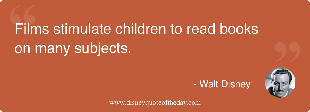 ⏮⏪random⏩⏭Films stimulate children to read books on many subjects. - Walt Disney⏮⏪random⏩⏭Permanent link: https://dqotd.me/quotes/246Image URL: https://dqotd.me/quotes/246.png