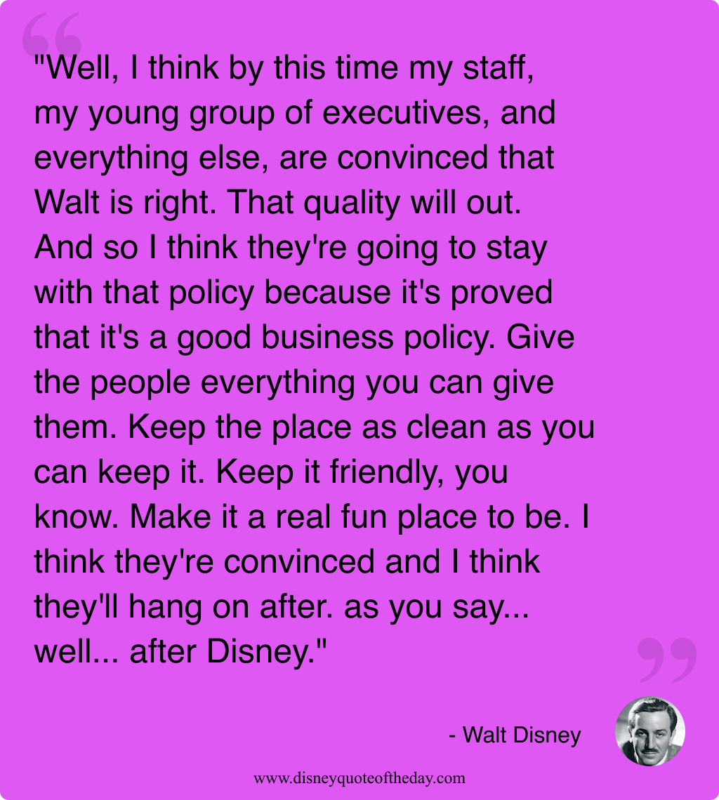 Well, I think by this time my staff, my young group of executives, and everything else, are convinced that Walt is right. That quality will out. And so I think they're going to stay with that policy because it's proved that it's a good business policy. Give the people everything you can give them. Keep the place as clean as you can keep it. Keep it friendly, you know. Make it a real fun place to be. I think they're convinced and I think they'll hang on after. as you say... well... after Disney.